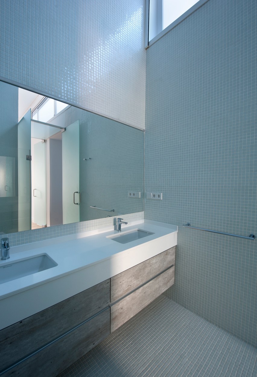 The low deck configures two skylights that relieve the limited scale of both houses located between alleys.