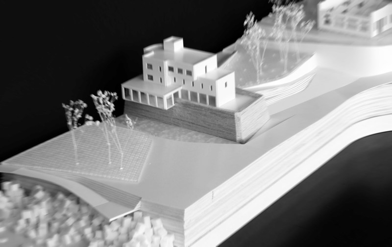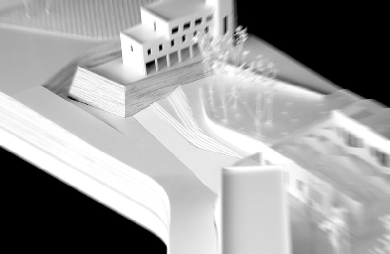 02_Recuperamos una de las sugerencias de la “Revisión e adaptación do plan especial de protección e reforma interior da pescadería e cidade vella 2015 “ en cuyos planos de ordenación “Intervención no espacio público” se dibuja un acceso en rampa desde la rua Veramar a la cota superior del relleno donde se sitúan las naves del metrosidero ya recuperadas y la que aún está disponible. Entre el lienzo del “Baluarte de Roma” y la nave a recuperar desmontamos el relleno de los años 50 recuperando la percepción completa de la fortificación del XVIII al mismo tiempo que se configura un recorrido accesible. La identidad de este lugar recupera la relación del baluarte con las trincheras que completaban el sistema defensivo en relación con una naturaleza y una topografía aun escasamente transformadas. Se interpreta aquí una vocación del lugar en la sucesión de muros de contención que acompañan el ascenso lento y en la definición de lo que llamamos “Pradera Social”. Un pequeño bosque Atlántico, una Carballeira, acompañada de algún frutal como nota de color que ha de acoger la celebración, el ocio, el encuentro con el otro, las miradas cruzadas entre los árboles. Desde La pradera se continua el ascenso por un lado a la cota de las naves y por potro al baluarte y el edificio racionalista que se sitúa sobre el finalizando el recorrido en un pequeño mirador cubierto posado sobre el lienzo histórico que nos recuerda a aquel del cercano Jardín de San Carlos. La materialización de esta fase ha de incidir en el contraste entre el baluarte como elemento patrimonial y las intervenciones posteriores La conexión peatonal en este punto es estratégica pues no solo facilita la movilidad hacia la ciudad desde la cota del Paseo Marítimo, sino que esperamos active la rua Veramar y su relación con la escuela Pablo Picasso.