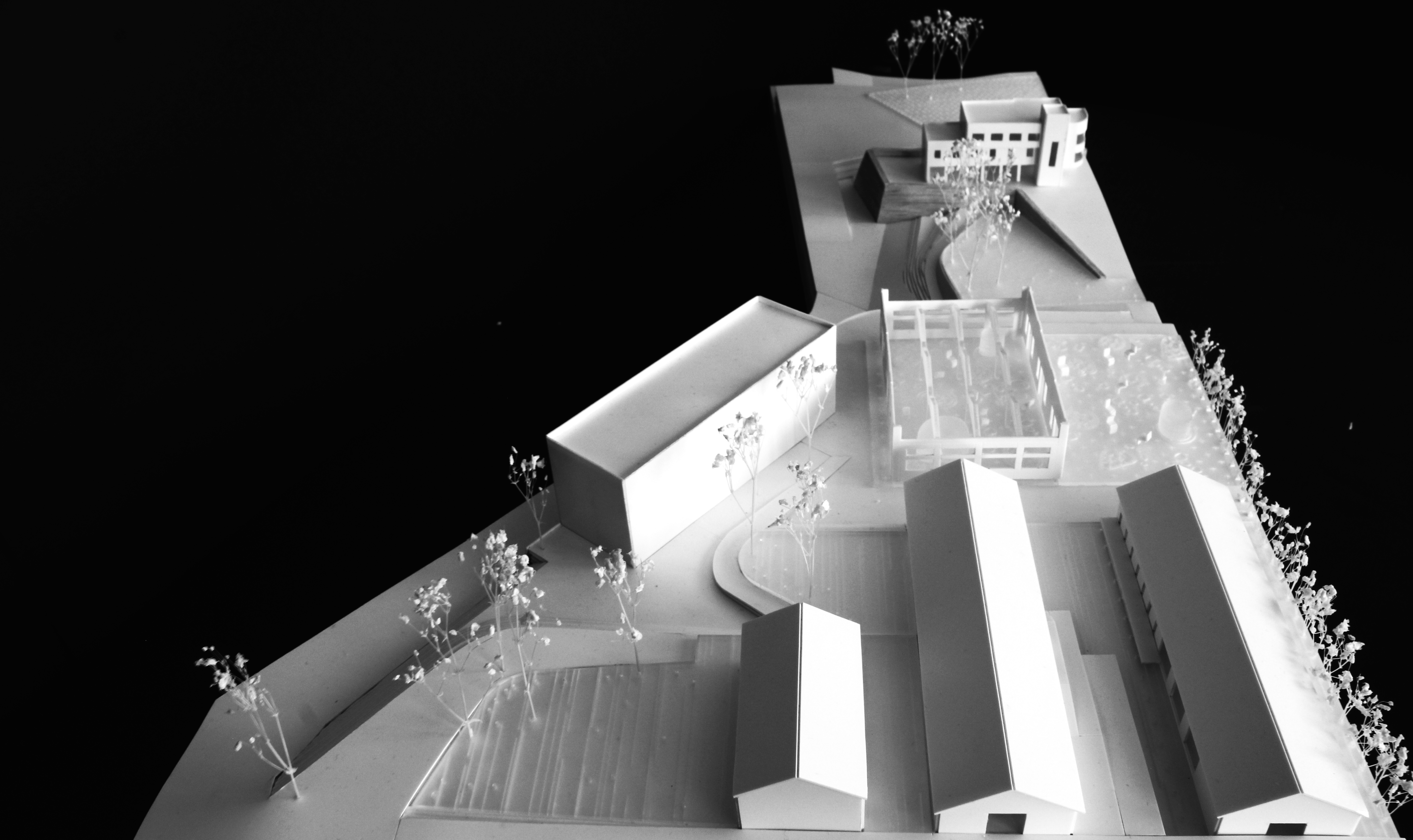 3_Entre las ya recuperadas naves del metrosidero y la pradera social propuesta …la nave abandonada y su espacio especular adyacente a modo de atrio, un lugar estremecedor como vacío como “Terrein Vague” como cortocircuito de lo consciente según Sola Morales, Ruina industrial, tercer paisaje diría Gilles Clement. Aquí la intervención explora esa condición genuina de la ruina contemporánea no romántica, del descampado, evitando la composición pintoresca, la escena o la recreación, sino lo natural como artefacto, como injerto. El orden en cuanto que acumulación. El montón como patrón. Se propone un Jardín de Herbáceas perennes, que ha de ocupar el atrio y la nave industrial que se recupera como invernadero. Un jardín onírico que sobrepasa las definiciones de jardín de invierno, o jardín ornamental y quiere ser una reflexión sobre la oportunidad de un paisaje alejado de la mirada. Un lugar para el silencio, para la ensoñación, que se completa con docenas de sillas en la tradición de jardines como el “Jardin du Luxembourg” en Paris en las que las sillas en ausencia de visitantes reales habitan el recinto a modo de “Objet trouvé”. La intervención se completa con pequeños pabellones de apoyo, pudiendo uno de ellos convertirse en posible control de accesos a la Hípica. El recinto pudiera ser un espacio de acceso a los equipamientos deportivos de la Hípica incorporando el inevitable limite físico con este equipamiento privado al diseño del jardín a modo de filtro arbustivo.